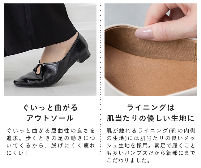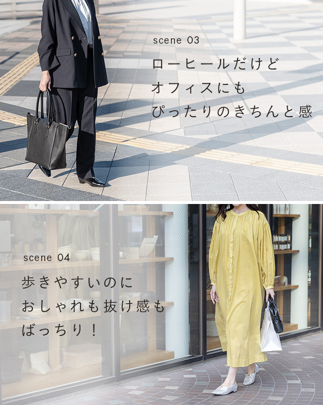 歩きやすさもスタイルアップも叶える低めヒールはデイリー使いもオフィス・オケージョン使いもできる万能さ。