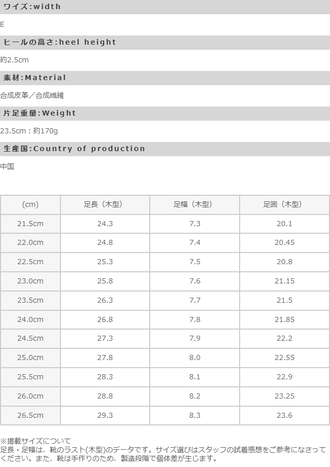 ※掲載サイズは、靴のラスト(木型)のデータです。