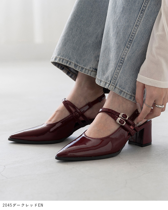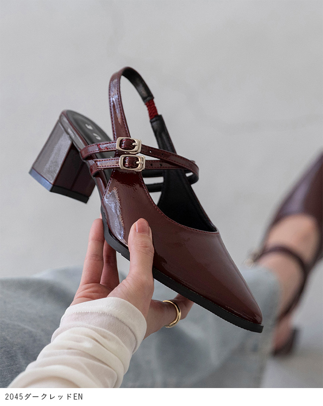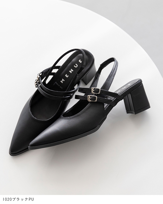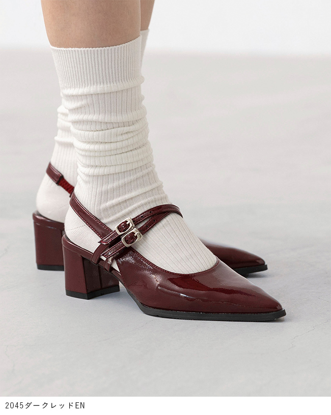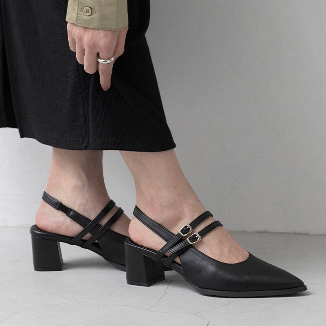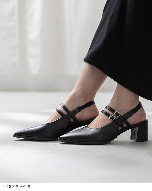 シャープなポインテッドトゥと、デザイン性の高い太めのブロックヒールを採用。デザインにこだわりながら、確かな安定感で長時間の歩行もサポート!