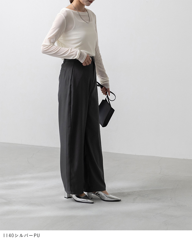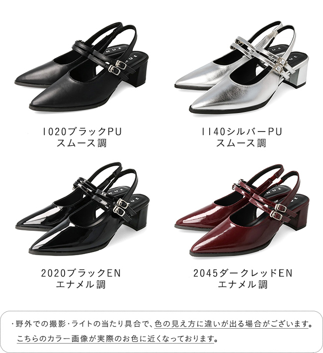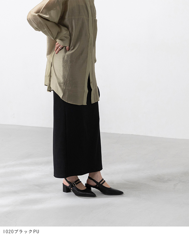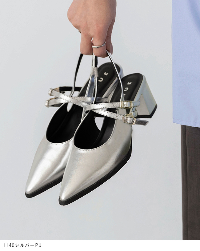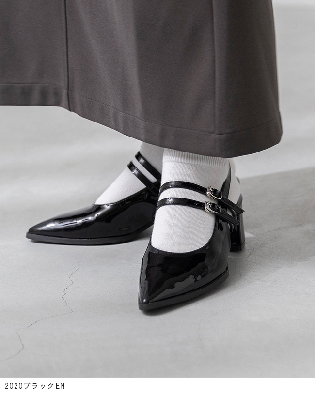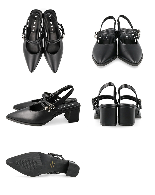 シャープなポインテッドトゥと、デザイン性の高い太めのブロックヒールを採用。デザインにこだわりながら、確かな安定感で長時間の歩行もサポート!