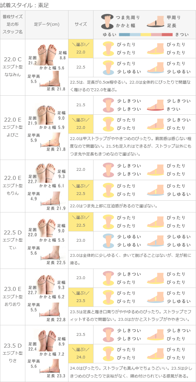 ※足の形には個人差があります。スタッフ試着感想は参考程度にお考え下さい。