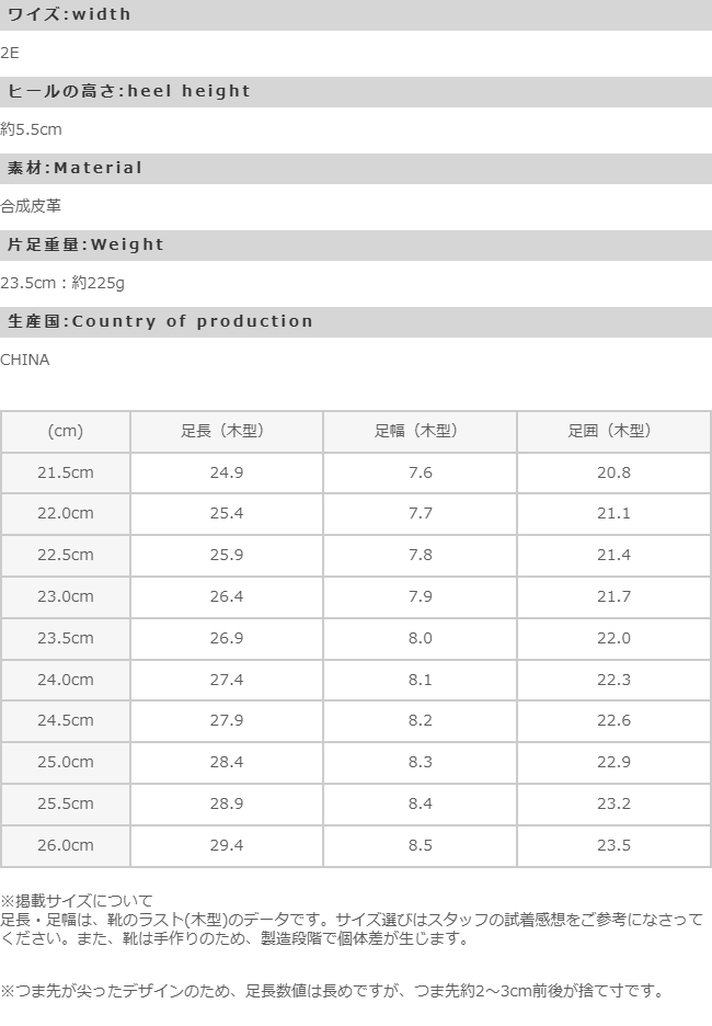 ※掲載サイズは、靴のラスト(木型)のデータです。