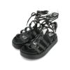 ソックスやパンツの上から見えるようにレースアップを巻きつければ、カジュアルながらも女性らしいこなれ感に。