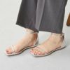 華奢な細ストラップが上品でヌーディーな足元を演出 スクエアトゥ 細ストラップ フラットサンダル