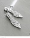 トレンドの細ストラップ+ポインテッドトゥで華奢な足元が完成します。