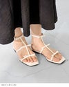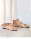 3本の細ストラップ+甲の縦ストラップが華奢見えを叶える、カジュアルなのにキレイにまとまるフラットサンダル。
