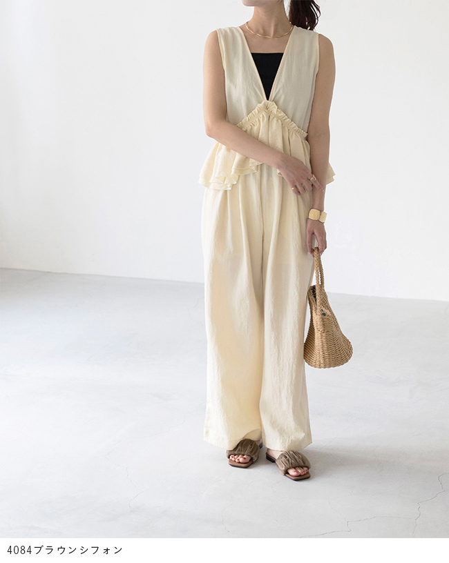 トレンドのシフォン生地にギャザーを寄せ、立体感を出したデザインが魅力。