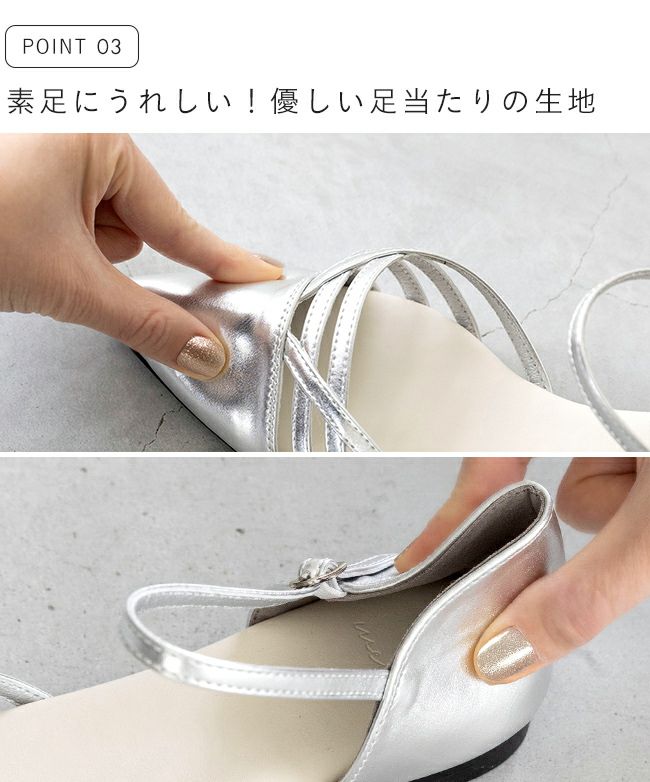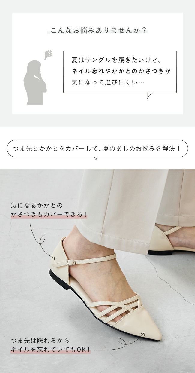 パンプスとサンダルのいいとこ取り!足をしっかり覆いながら、カッティングや素材感でさりげなく肌見せを取り入れて涼しげな印象に。