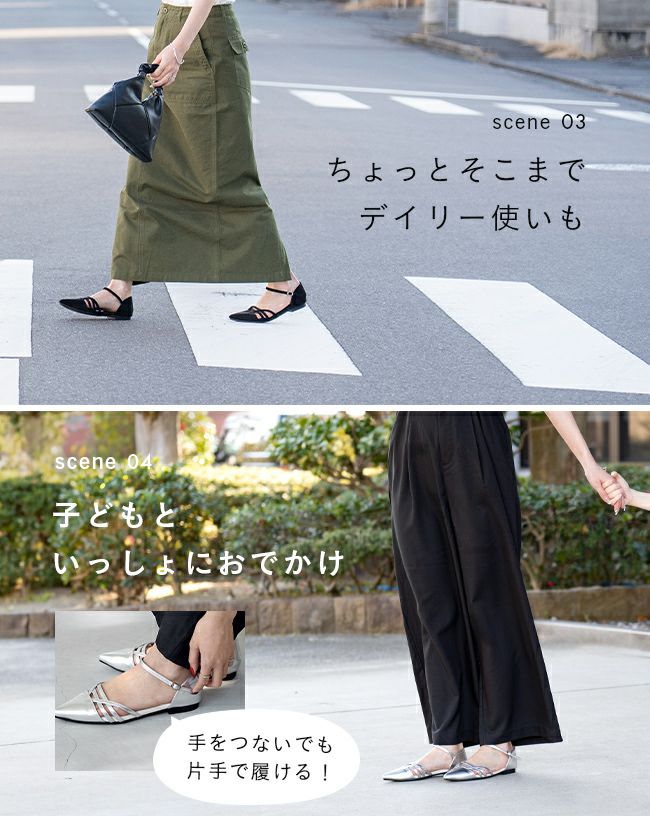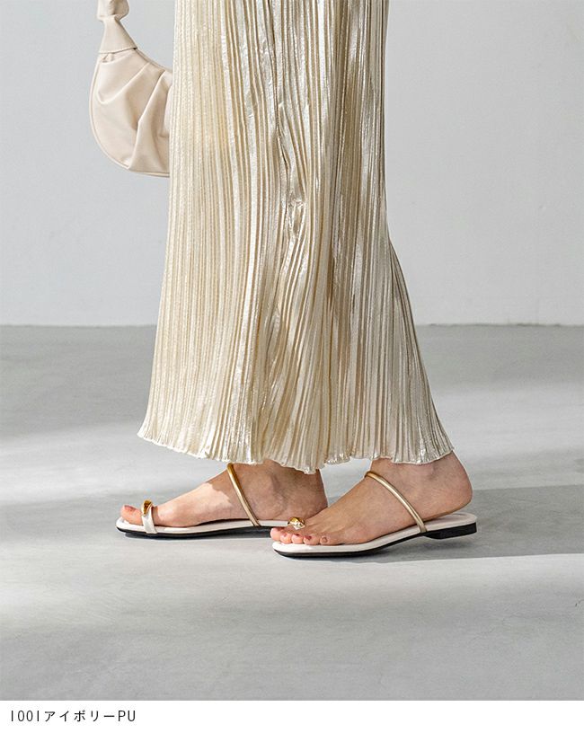 「きれいめといえばヒール」を覆す、フラットヒールのきれいめサンダル。シンプルなデザインだからこそコーデを選ばず、上品さをプラスしてくれます。