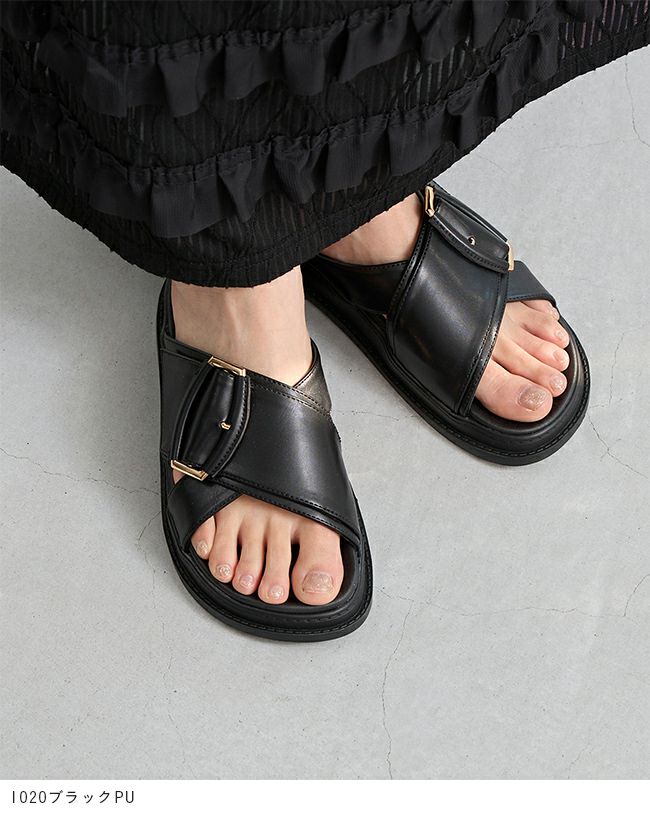 リラックス感やちょっと個性的なデザインがおしゃれなカジュアルデザイン。休日にさらっと履いて出かけたいぺたんこサンダル。