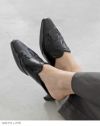 すっきりとしたシェイプに合わせたプレートヒールがきれいめのニュアンスもプラス。
