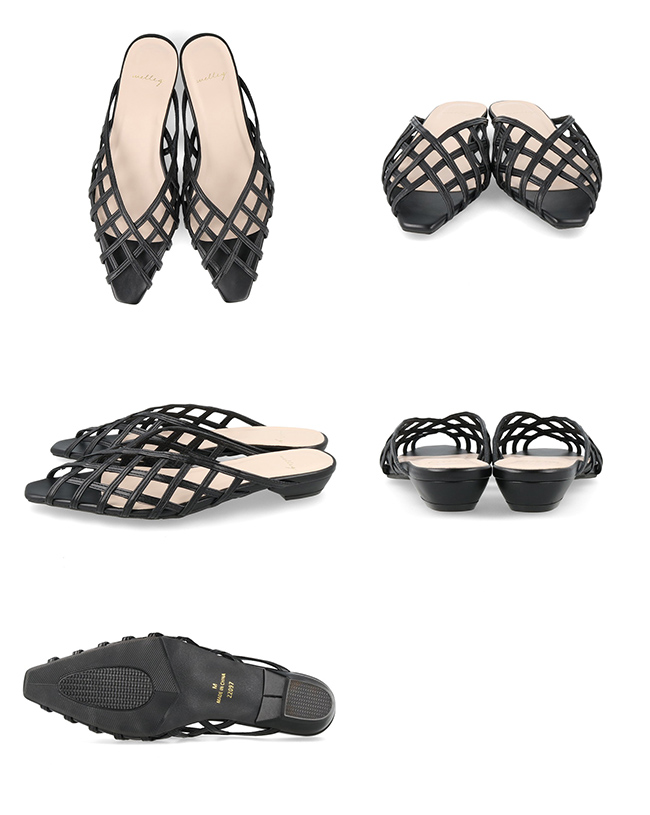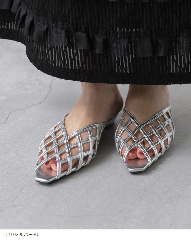 カジュアルになりがちなミュールに、凛とした大人の表情を添えています。