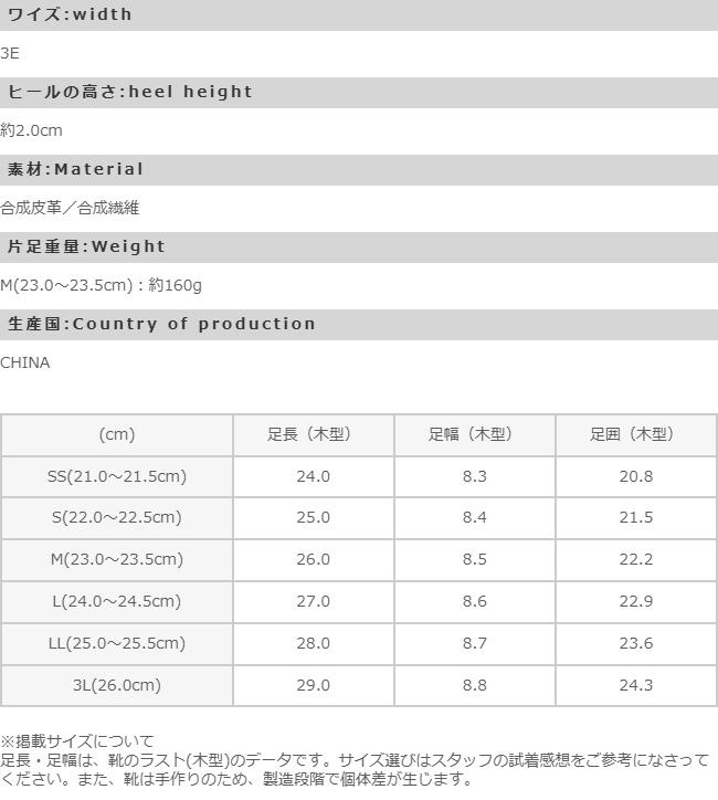※掲載サイズは、靴のラスト(木型)のデータです。