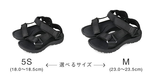 4Sはつま先に約10㎜ゆとり。ストラップはは緩いが問題なく履ける。5Sはつま先に約5㎜のゆとり。履けるがややキツイので4Sを選ぶ。