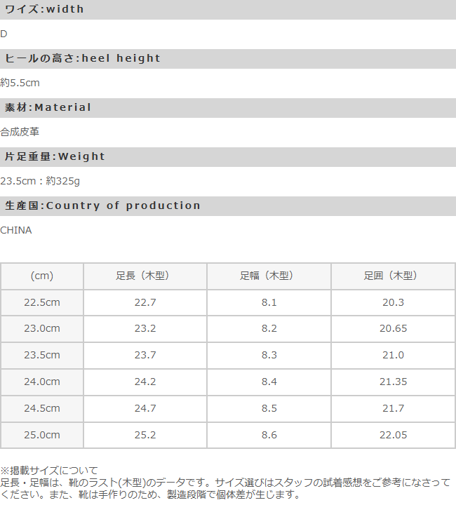 ※掲載サイズは、靴のラスト(木型)のデータです。