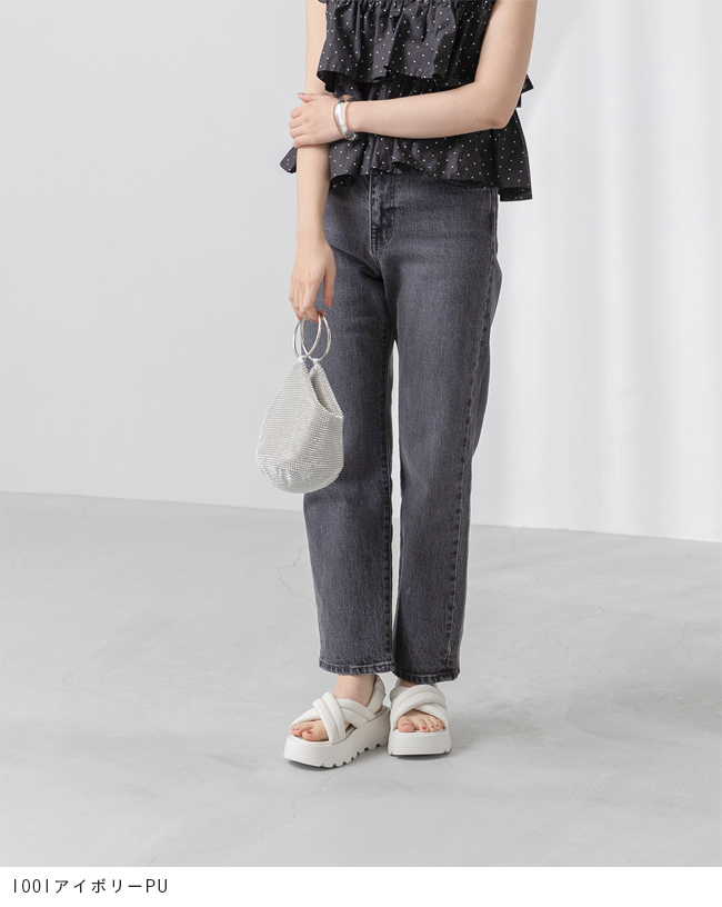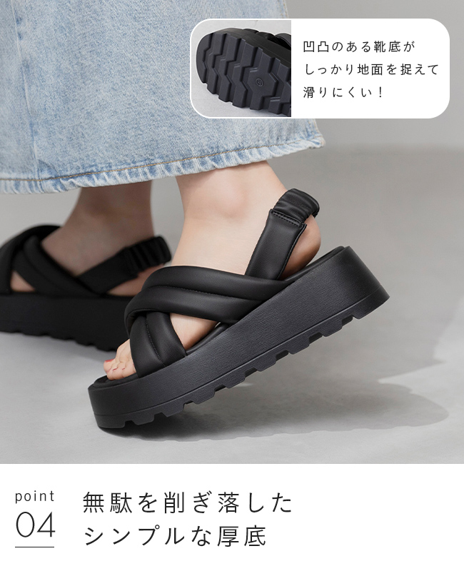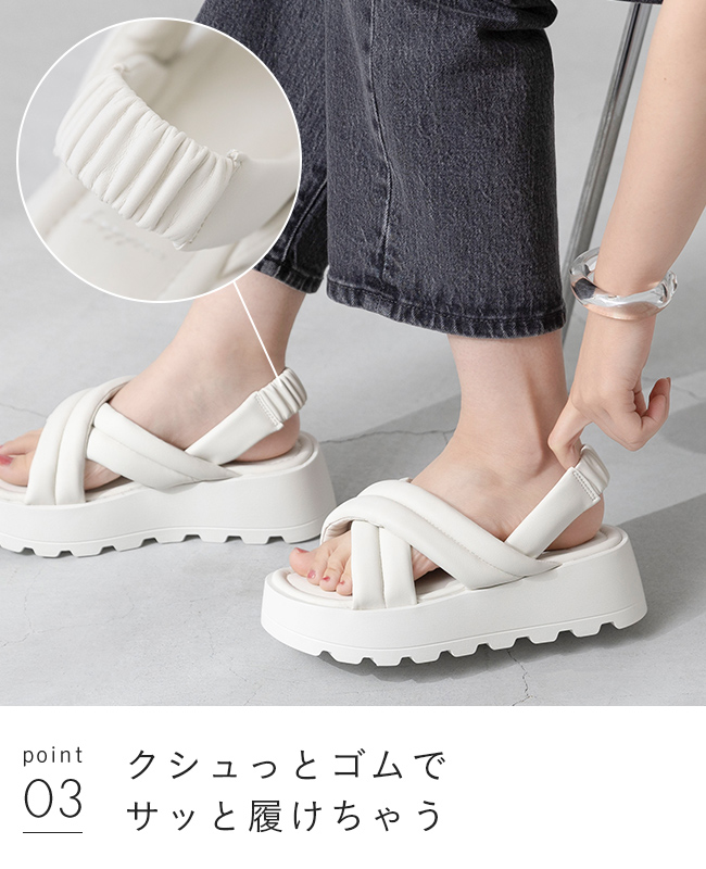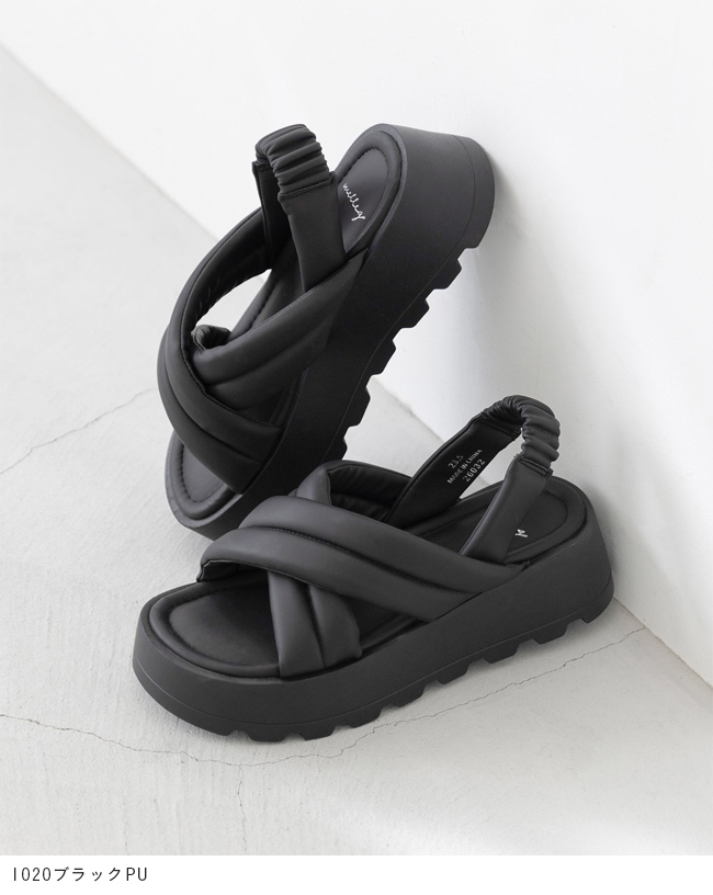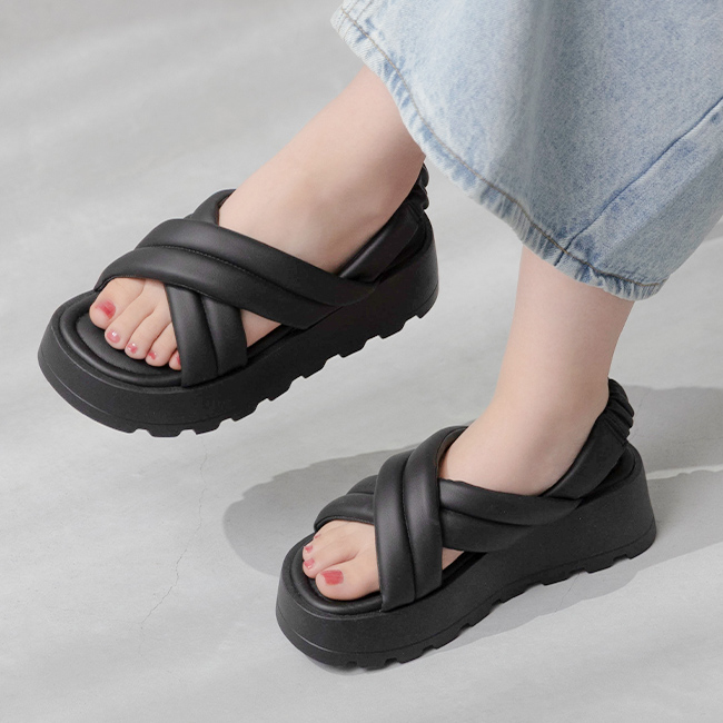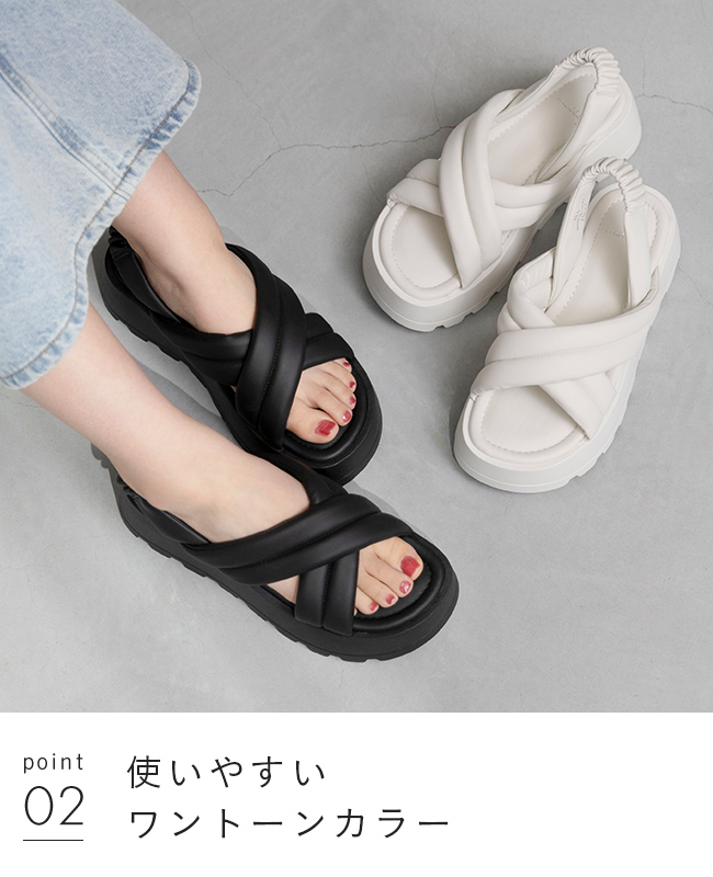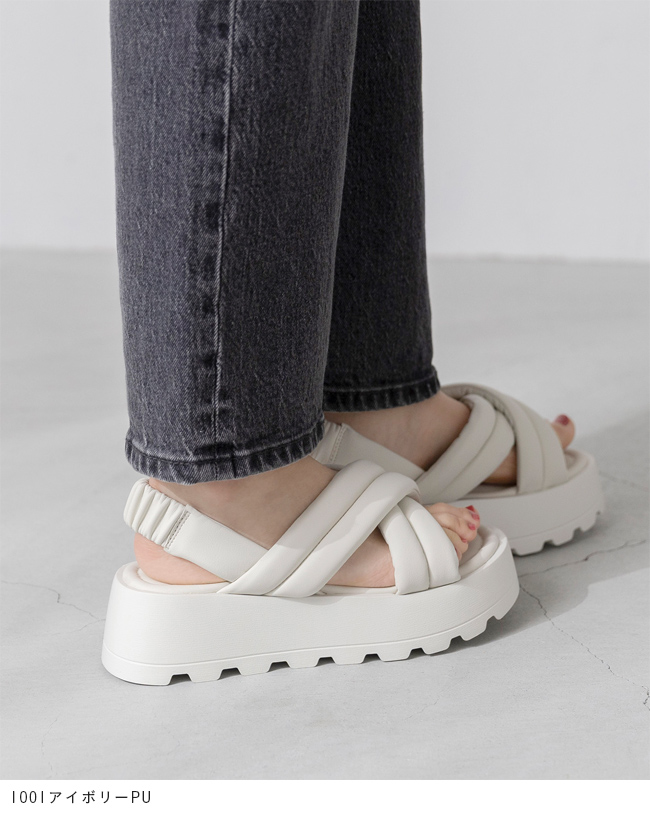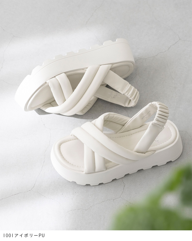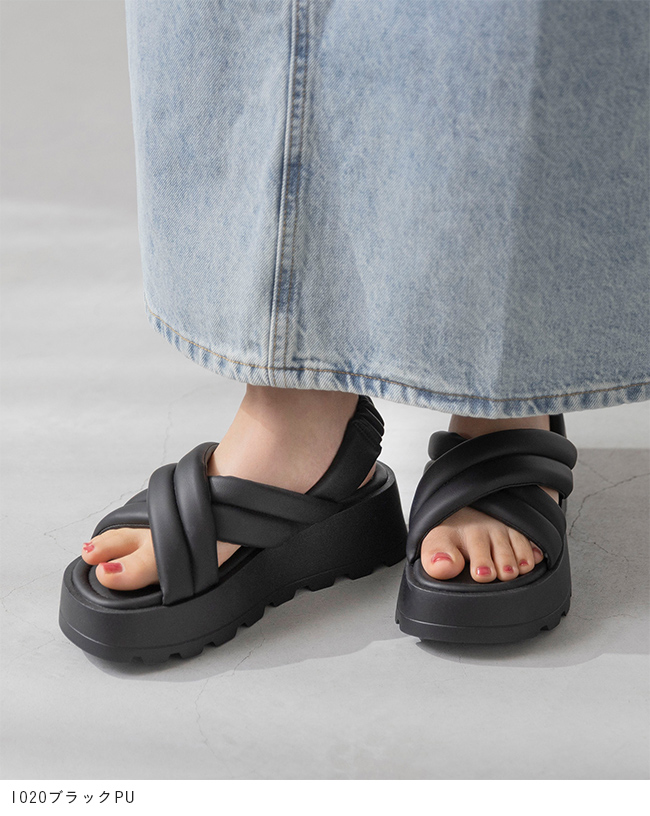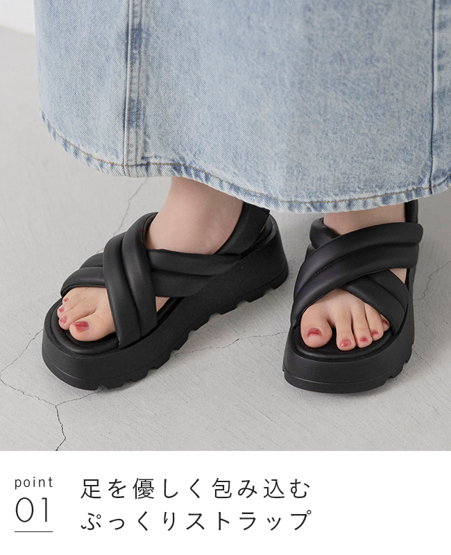 ぷっくりクロスベルトの厚底パフィーサンダル