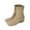 アッパーデザインは角張りすぎないスクエアトゥにセンターシームが美しいトレンドフォルム。丸みとシャープさを兼ね備えた台形ヒールがオシャレ感をしっかりアップ!