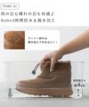アッパー(表の生地)は撥水、アウトソール(本底)は浸水しにくい防水仕様なので、雨や雪でも安心!
