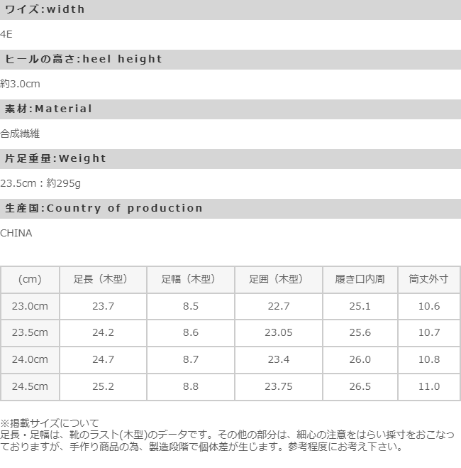 ※足長・足幅は、靴のラスト(木型)のデータです。その他の部分は、細心の注意をはらい採寸をおこなっておりますが、手作り商品の為、製造段階で個体差が生じます。