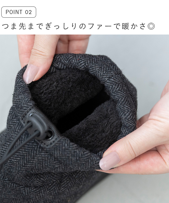 中敷き、ライニングにはつま先部分までファー素材をたっぷり使用しているので、温かく保温性に優れています。