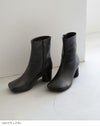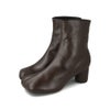 ぷっくりと可愛いシルエットのオブリークトゥとデザインヒールが印象的な1足。