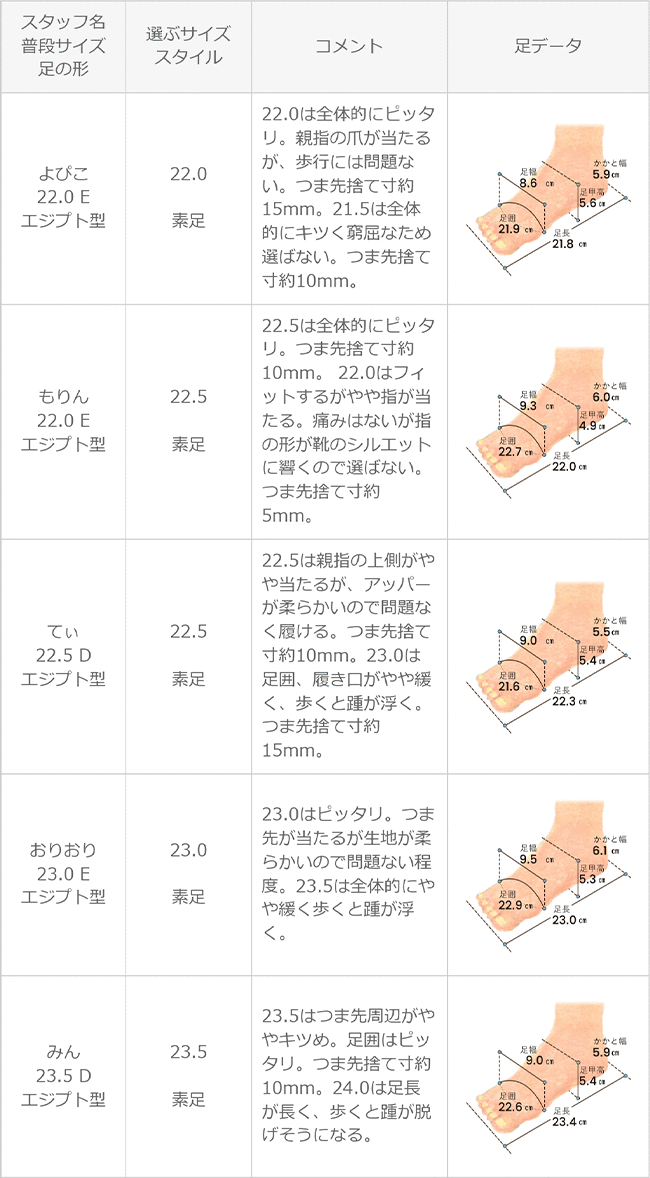 ※足の形には個人差があります。スタッフ試着感想は参考程度にお考え下さい。