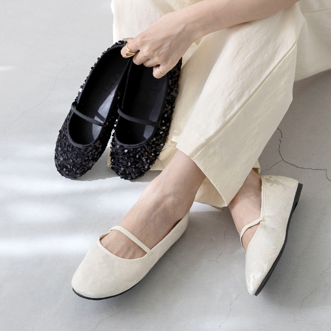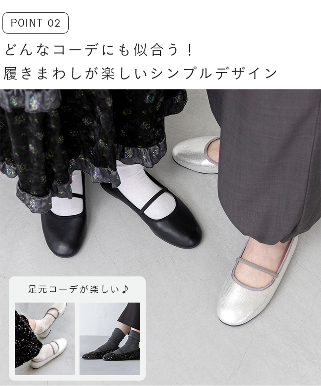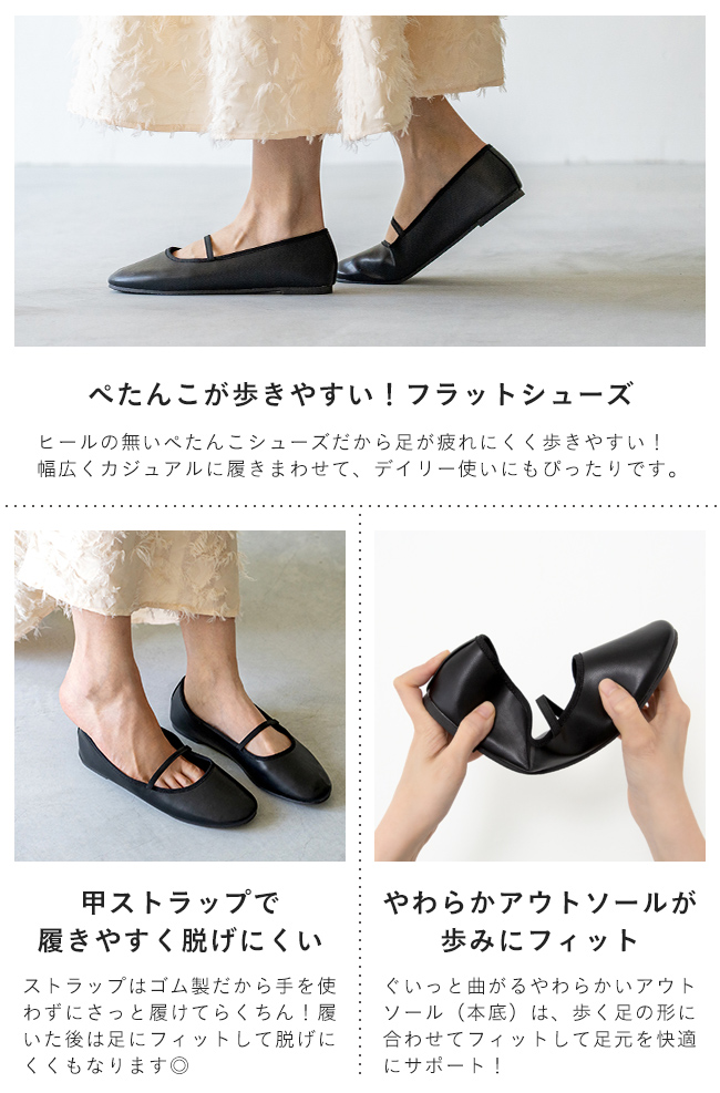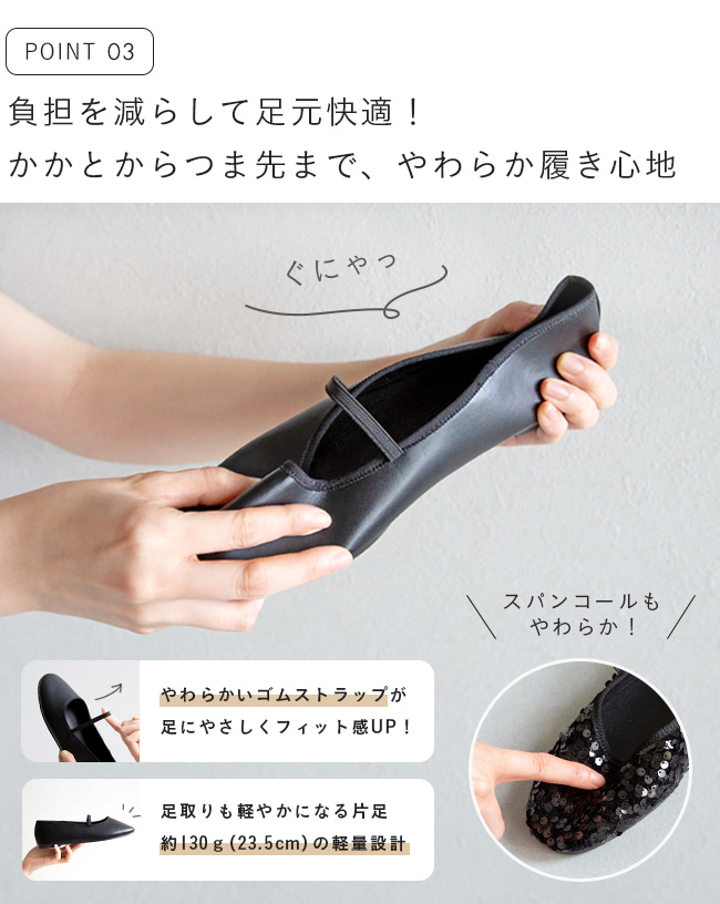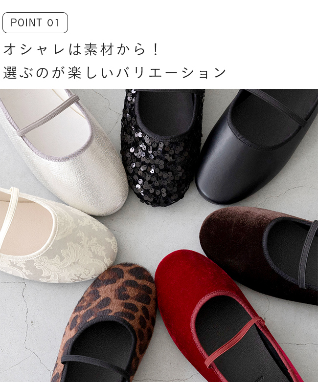 やわらかゴムストラップだから足元らくちんな、さっと履けて可愛いバレエシューズ!
