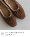 大人可愛いスクエアトゥハラコ調バレエシューズ