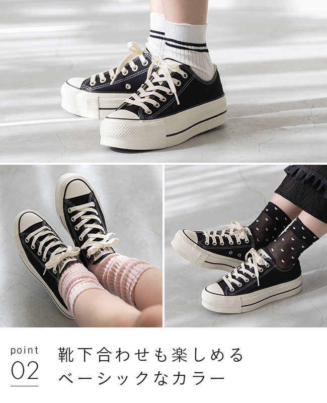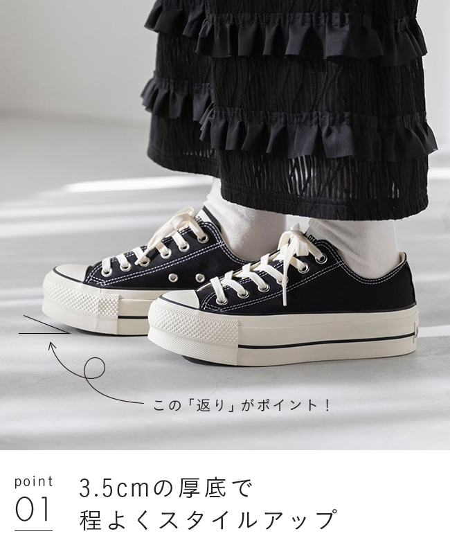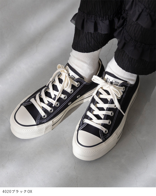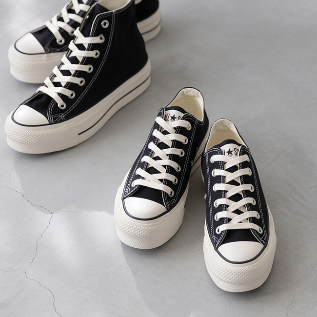 ALL STARのベーシックなデザインを厚底にアレンジしたローカットモデル。