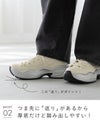 たっぷりとした厚底ソールはつま先部分に返りがあるので踏み出しやすい仕様に。