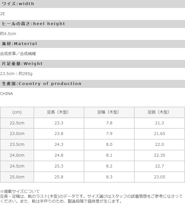 | 22.5cm | 23.3 | 7.8 | 21.3 |