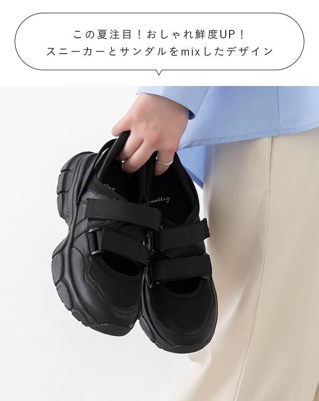 スニーカーとサンダルの良いとこどりなトレンドのデザインで、どんなスタイルにも合わせやすくおしゃれに仕上がる1足です。