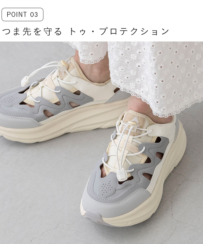 登山隊や過酷なフィールドで愛用されてきた高い機能性を、“日常でも使えるファッショナブルな厚底スニーカーサンダル” に落とし込みました。