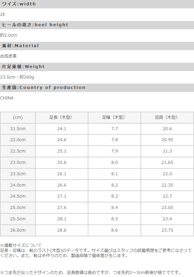 ※掲載サイズは、靴のラスト(木型)のデータです。