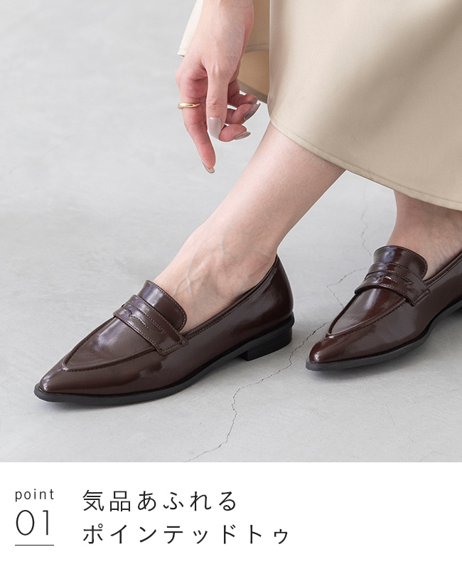 シャープなシルエットで脚元を美しく魅せる、気品あふれるポインテッドトゥ。