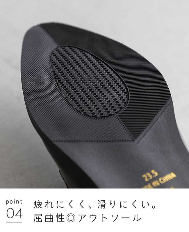 安定感のある太ヒールは歩く時も疲れにくく、お仕事にもぴったり。