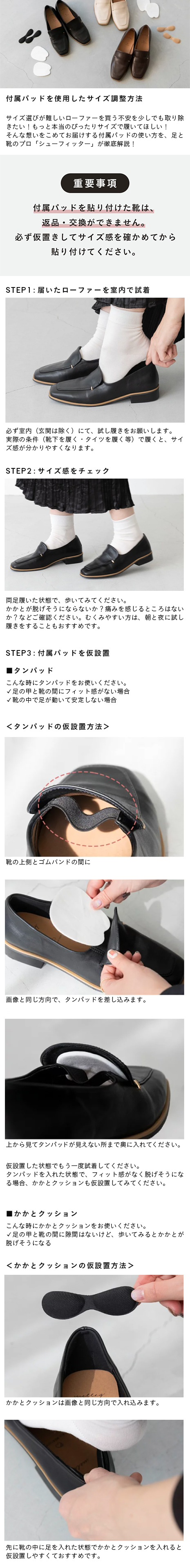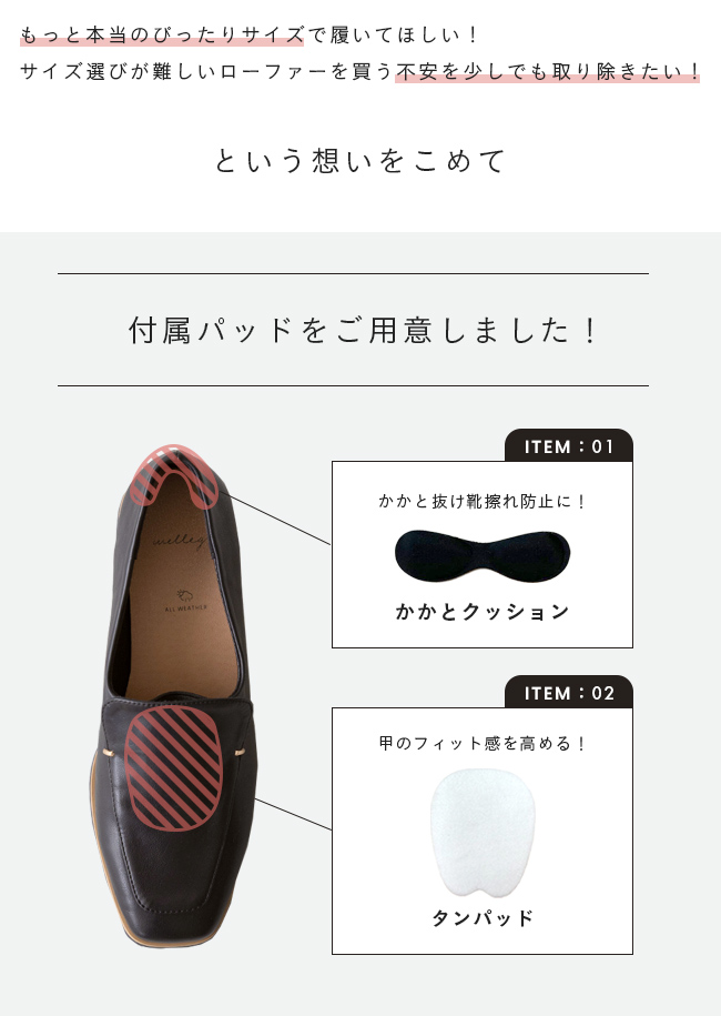 3.ピッタリサイズで履ける付属パッド付き!