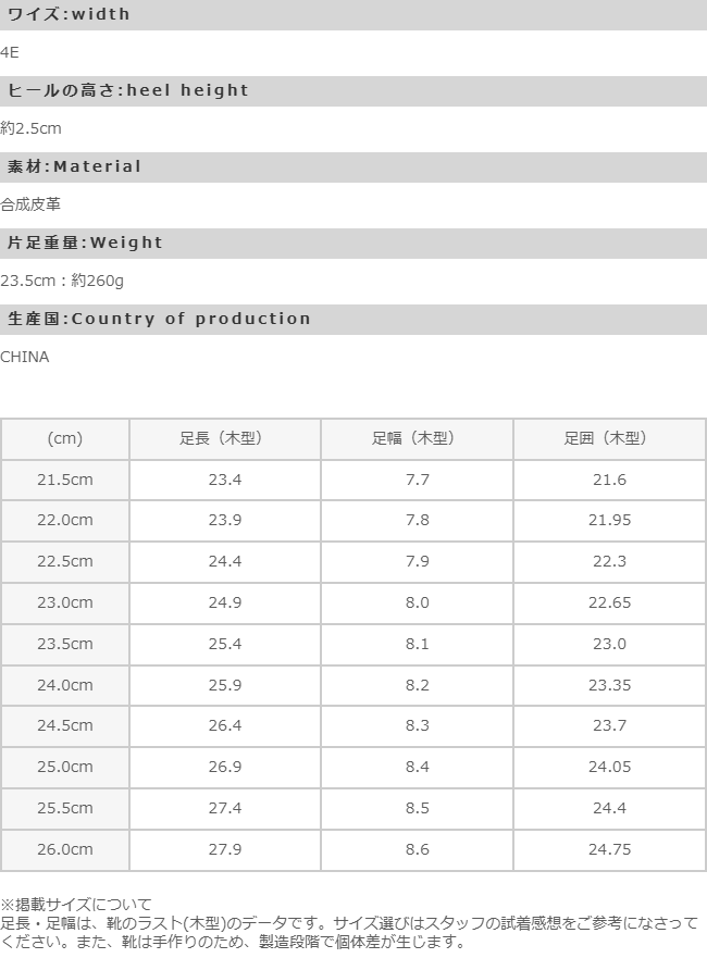 ※掲載サイズは、靴のラスト(木型)のデータです。