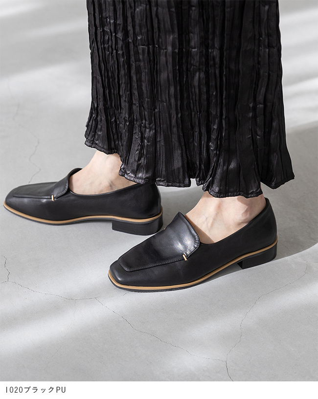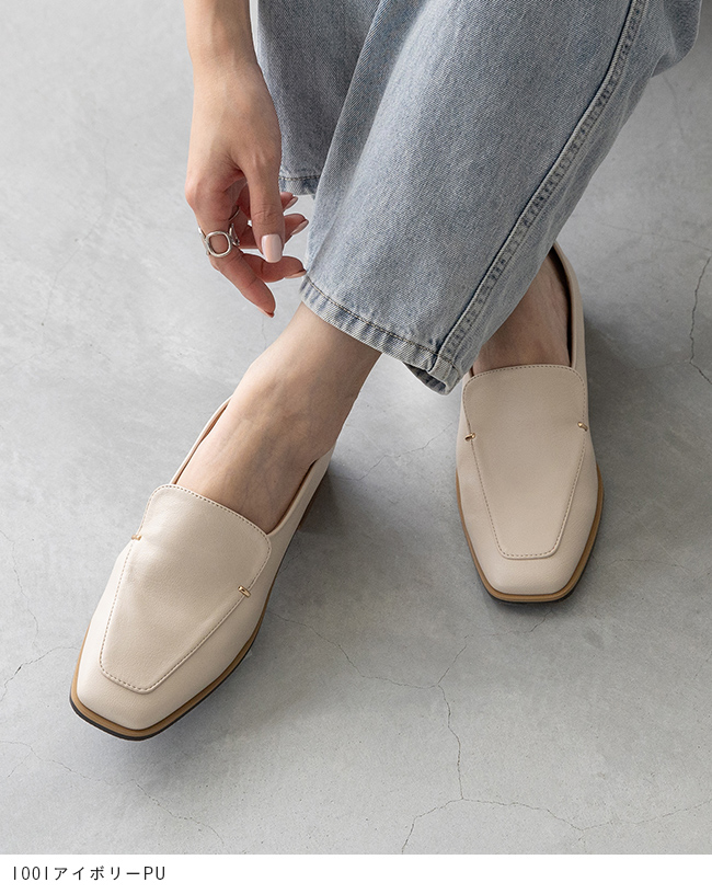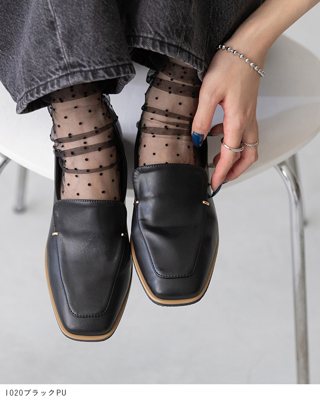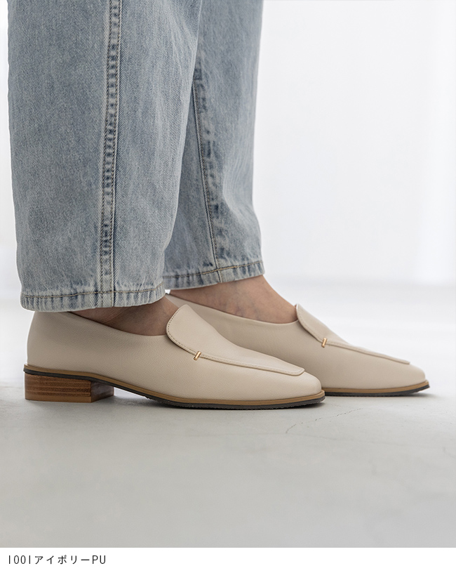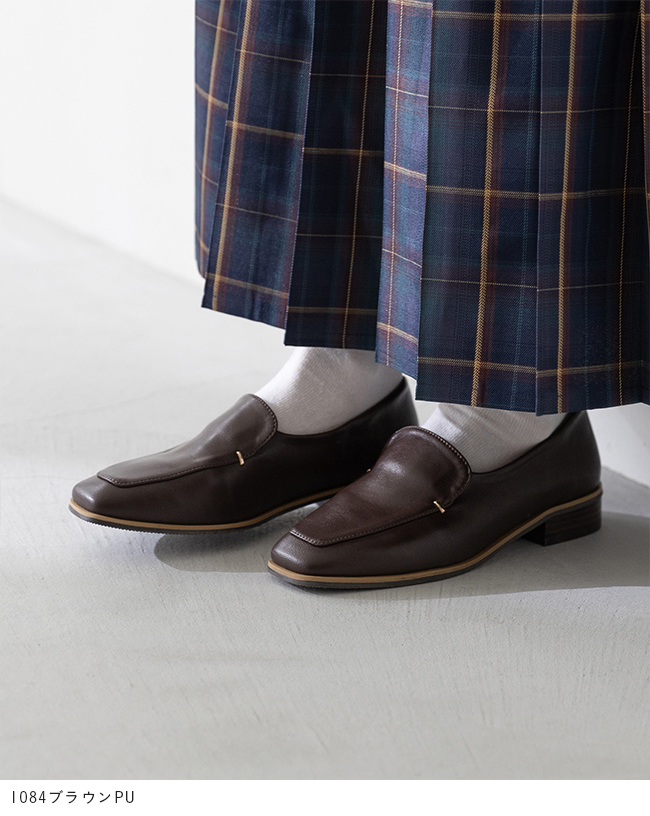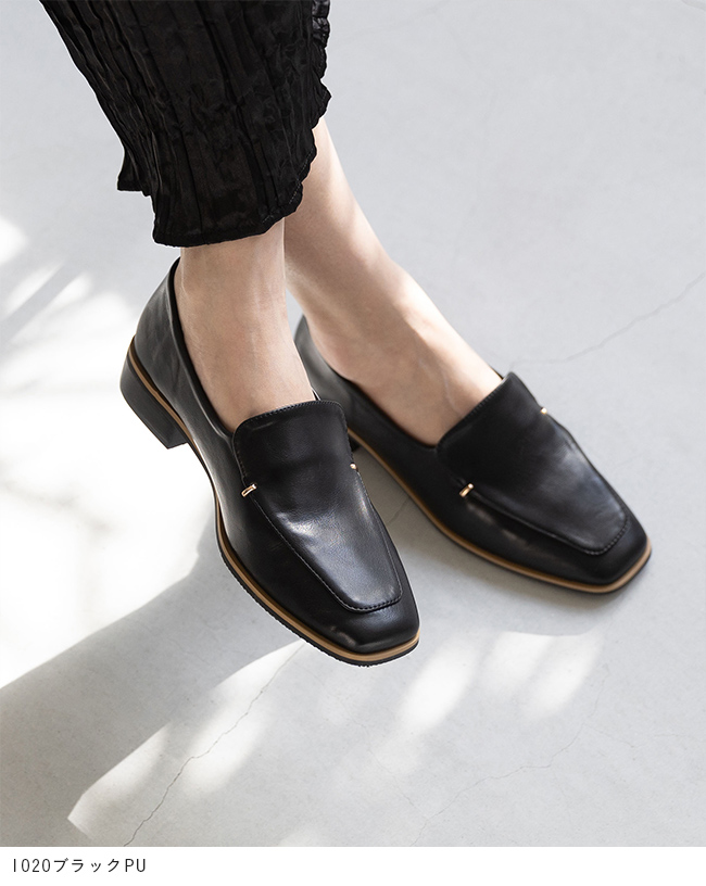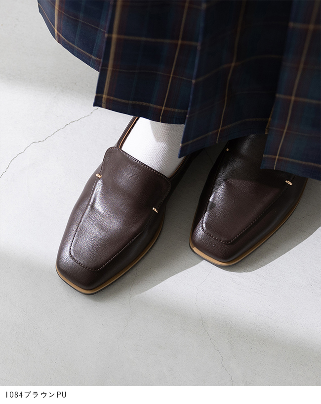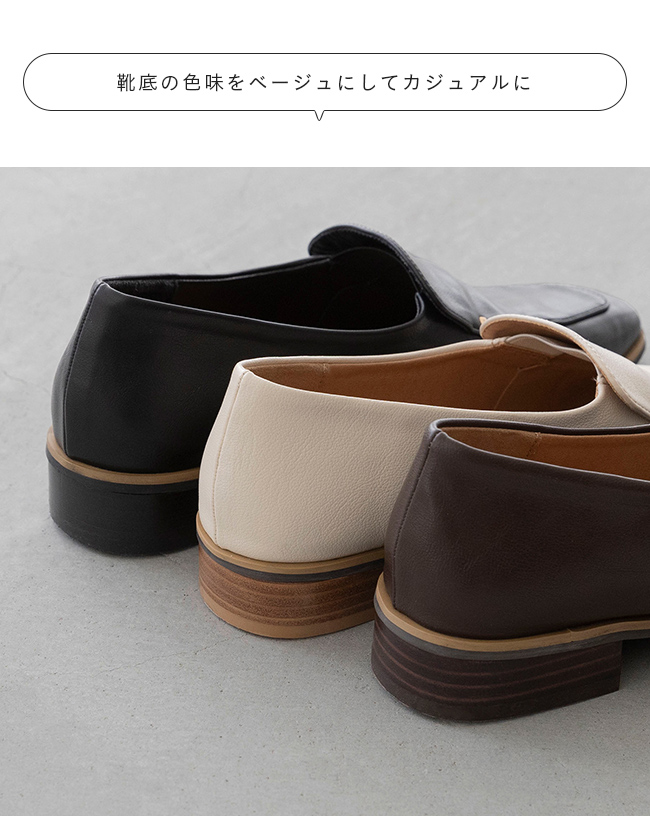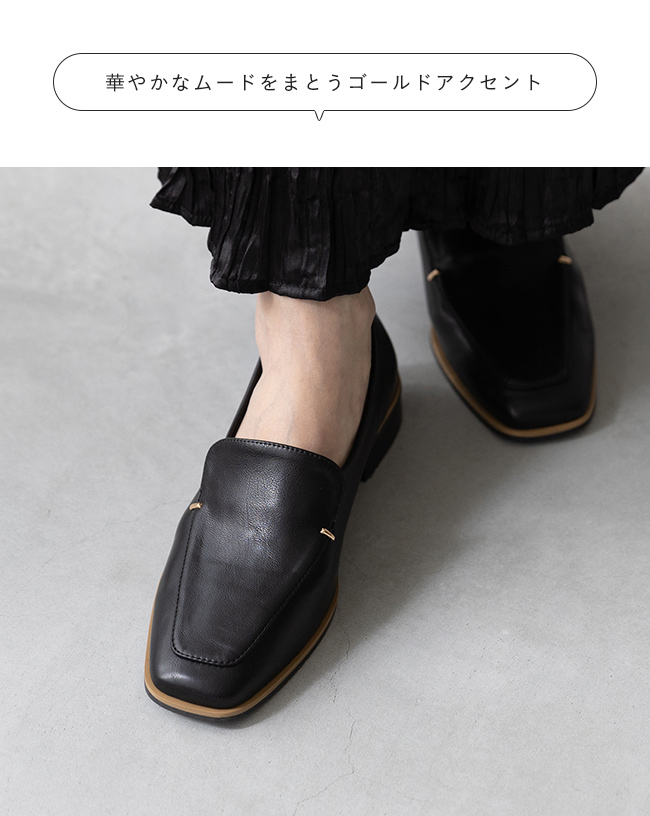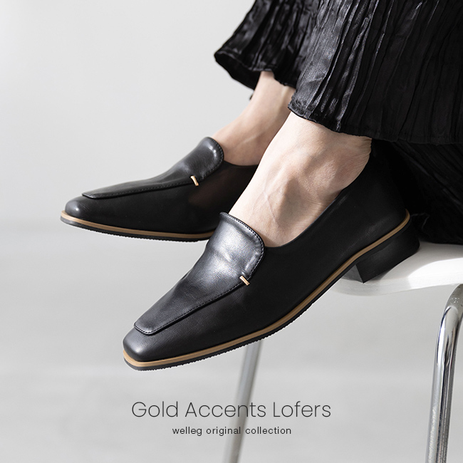 シンプルなローファーにゴールドのアクセントが、落ち着いた華やかさを感じさせて"大人レディ"なムードを演出。