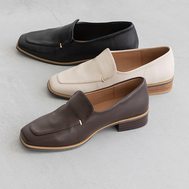 ヒールは皮を重ねた上品なスタック調ヒールを採用。