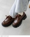 マニッシュな印象のレザー調のレースアップシューズはラウンドトゥで可愛さもプラス。