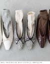 履き口とリボンにサテン生地を組み合わせて立体感と高級感のある仕上がりに。