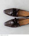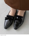 スッと伸びたトゥとベロアリボンが印象深い秋冬コーデにしてくれる、ベロアリボンスクエアトゥローファー