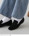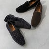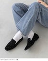 上品なベロア調と、スタッズを合わせたハラコ調の、素材感を楽しめるオペラシューズ。