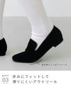 靴底はつま先部分にしっかりと凹凸のある合成ゴム素材を採用。地面との摩擦で滑りにくく安心して歩けます。
