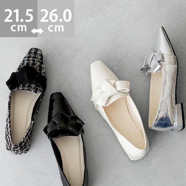1.すっきりスクエアトゥ×リボンの甘すぎないデザイン