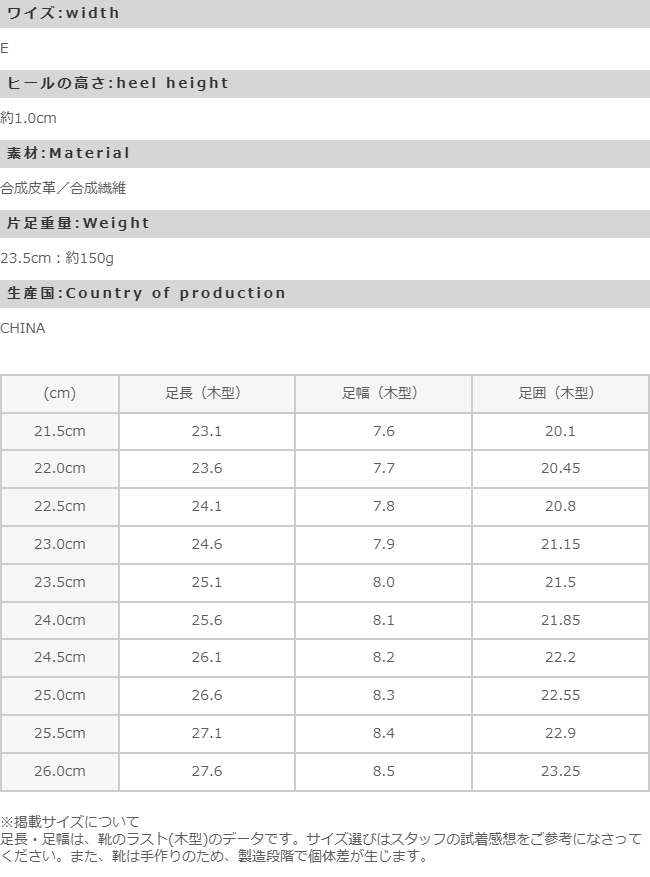 ※掲載サイズは、靴のラスト(木型)のデータです。
