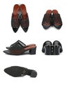 やや太めで安定感のあるヒールは丸みを帯びた台形デザインでオシャレなアクセントに。