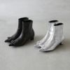 リボンを取り入れた今季トレンドのバレエコアスタイルのブーツ。大きすぎない2連のリボンは控えめながらきちんと存在感もあり。