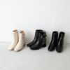ベーシックなブーツにトレンドのバックルを付けることで一気に旬ブーツが完成。